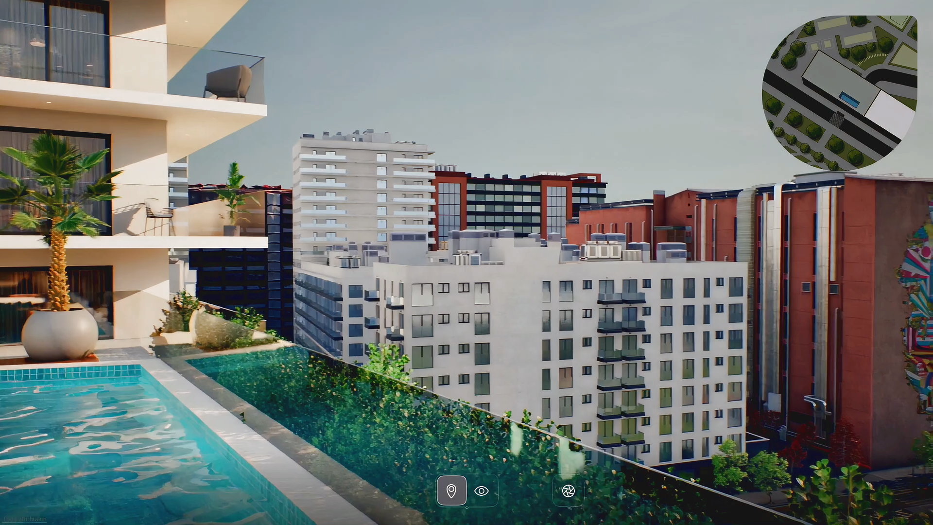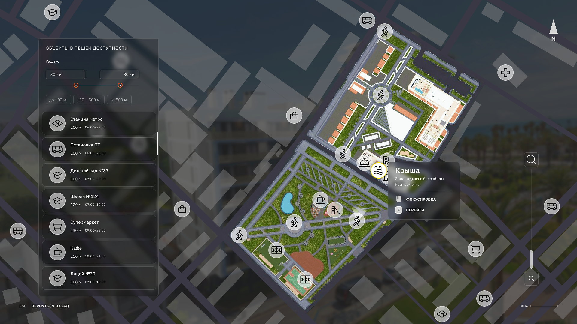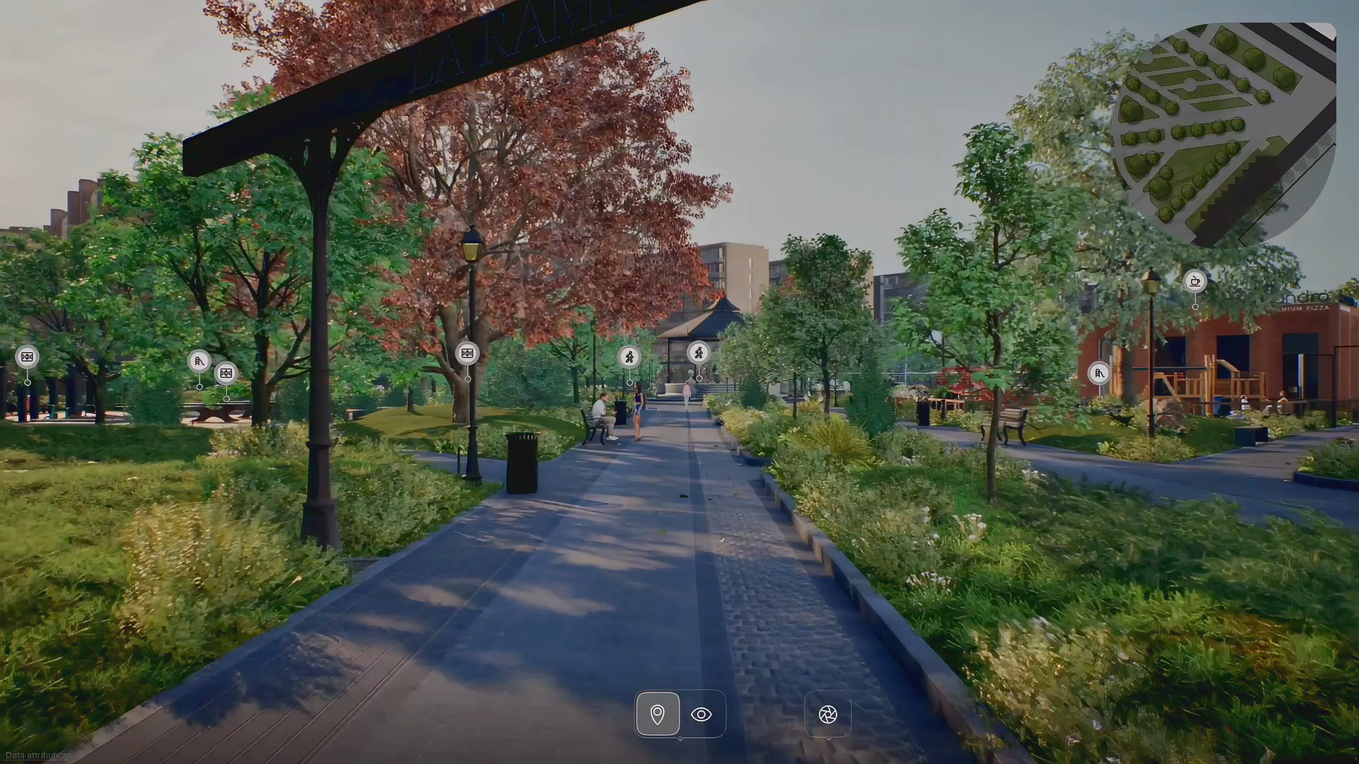 Мы формируем максимально реалистичное анимированное окружение и инфраструктуру, уделяя внимание архитектуре, точкам интереса и притяжения: магазины, фитнес, школа, детсад, транспорт, аллеи, парковки, зоны отдыха и т.п.
