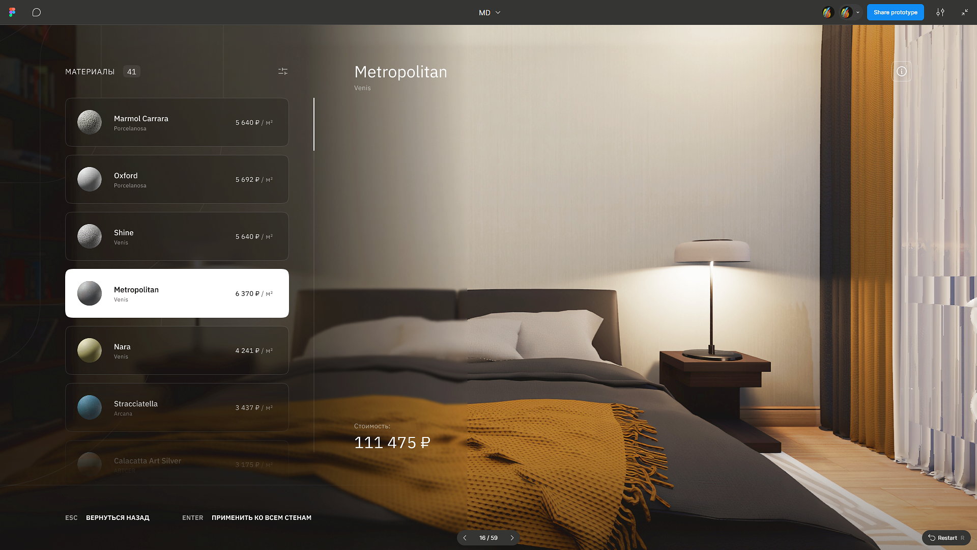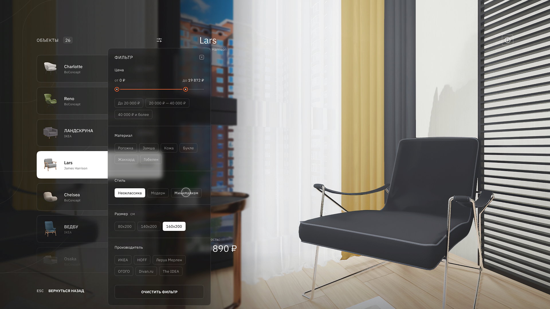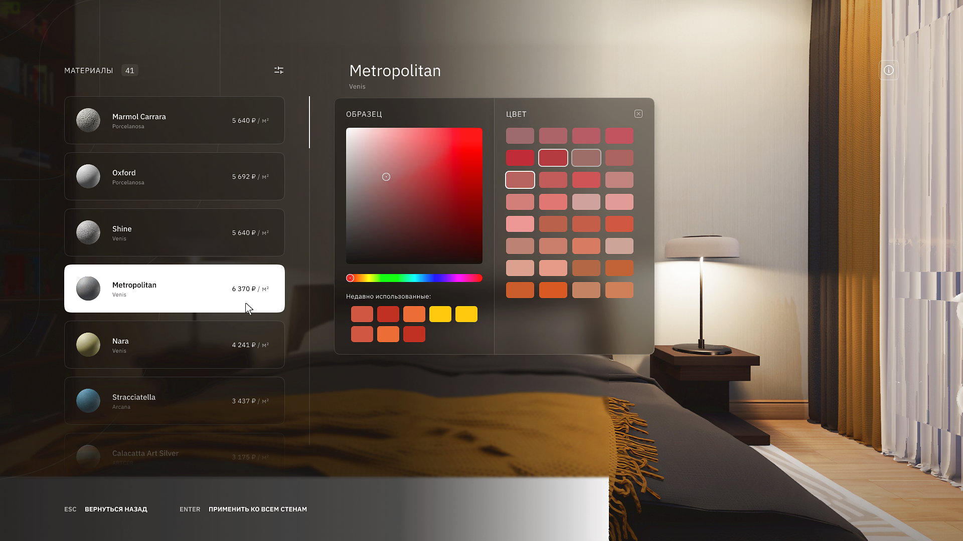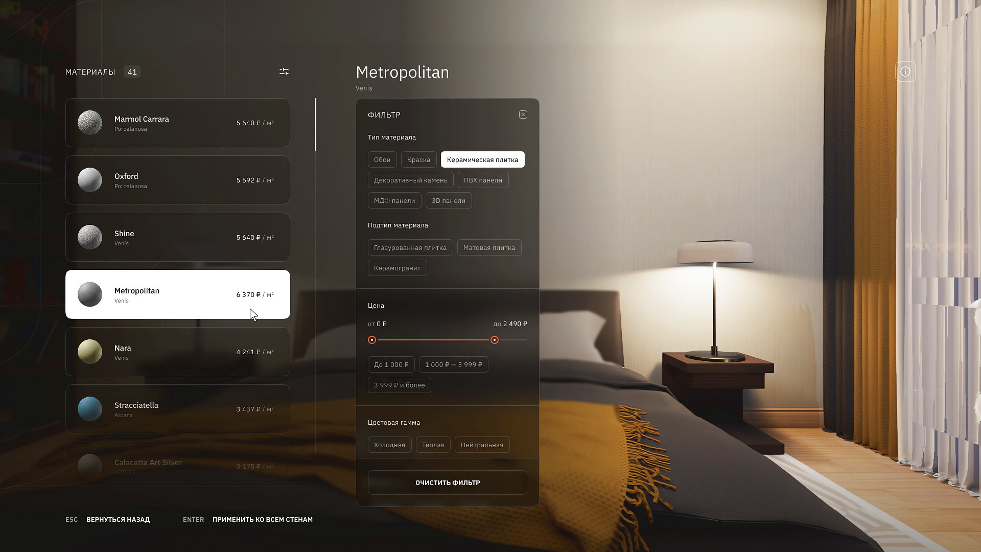 Выбор реальных материалов, мебели и аксессуаров напрямую от поставщиков.